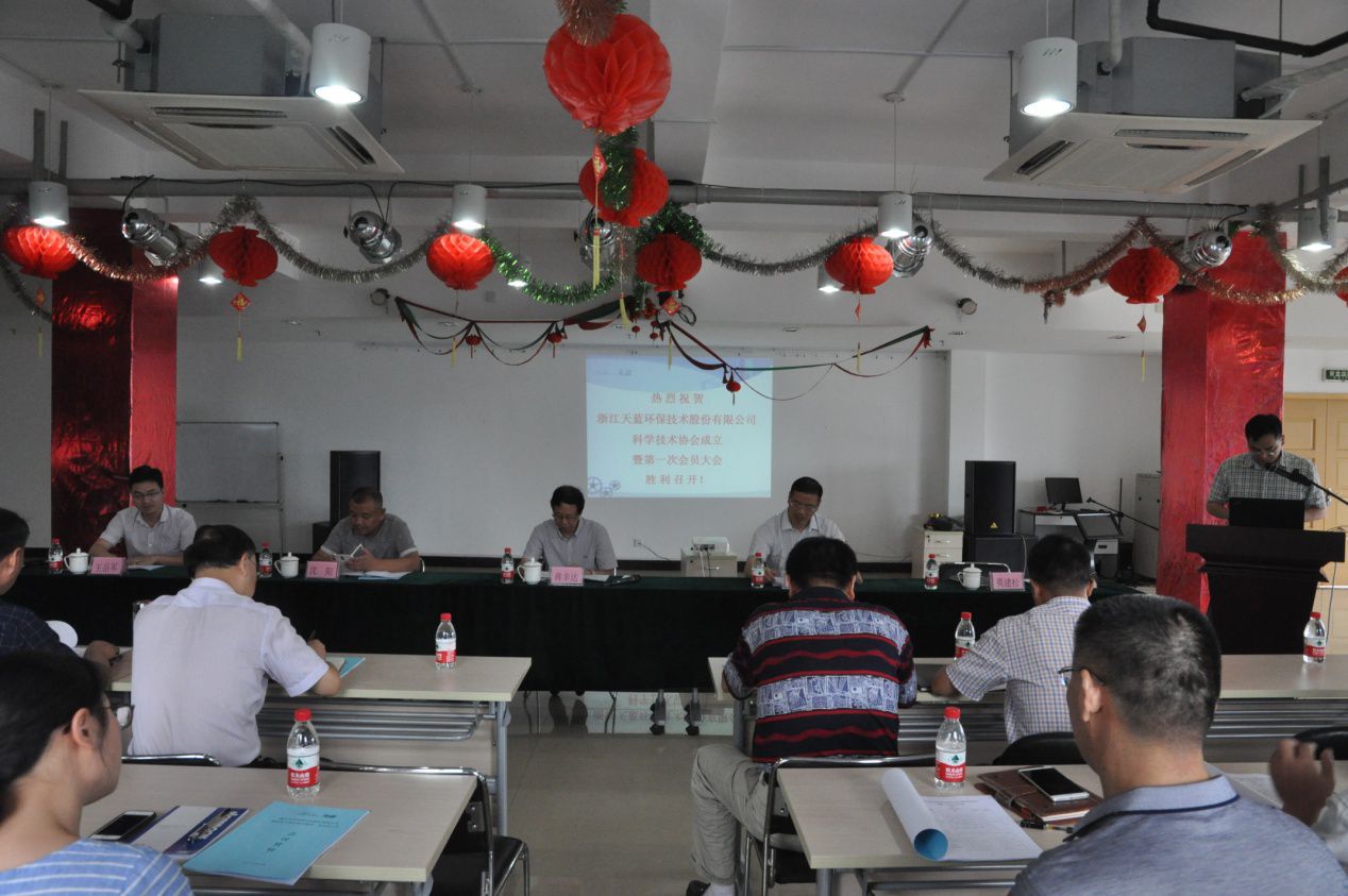 2017年8月9日,浙江天藍環保技術股份有限公司科學技術協會成立暨第一次代表大會在公司6樓多功能廳舉行。蕭山區科協主席蔣幸達、北干街道黨工委副書記、科協主席沈陽、公司創始人吳忠標等出席了會議。大會選舉王岳軍為天藍科協主席,李福才為副主席,陳美秀為秘書長。