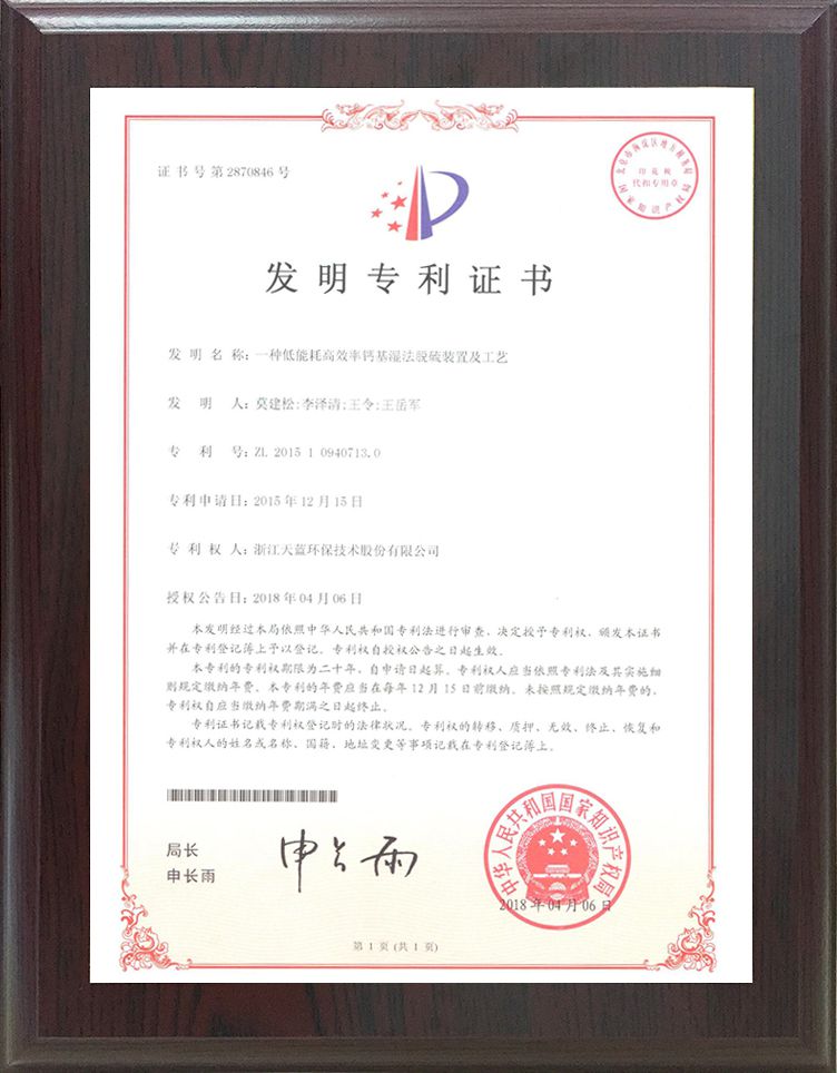專利標準證書
