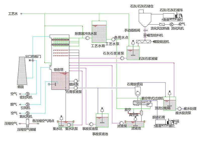 以廉價易得的石灰石或石灰作為脫硫劑,脫硫效率可達98%以上,副產(chǎn)的脫硫石膏可作為建材行業(yè)(如水泥廠、石膏板廠)的助劑或原料,也可作為土壤改良劑等。是技術成熟、運行可靠、應用最為廣泛的脫硫工藝,廣泛應用于各種規(guī)模的工業(yè)鍋爐和火電鍋爐。
