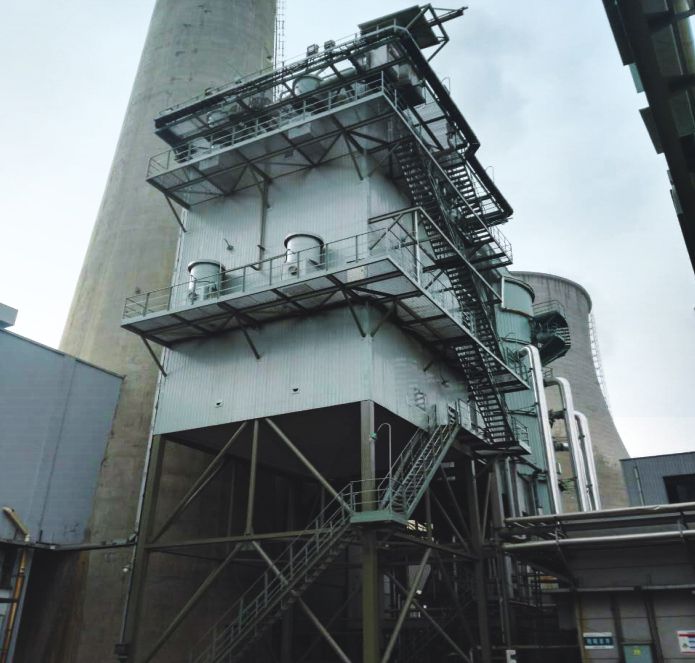 濟寧金威熱電有限公司2×130t/h鍋爐濕電工程,釆用塔外臥式金屬板式濕電,配置堿液掛膜沖洗水系統。